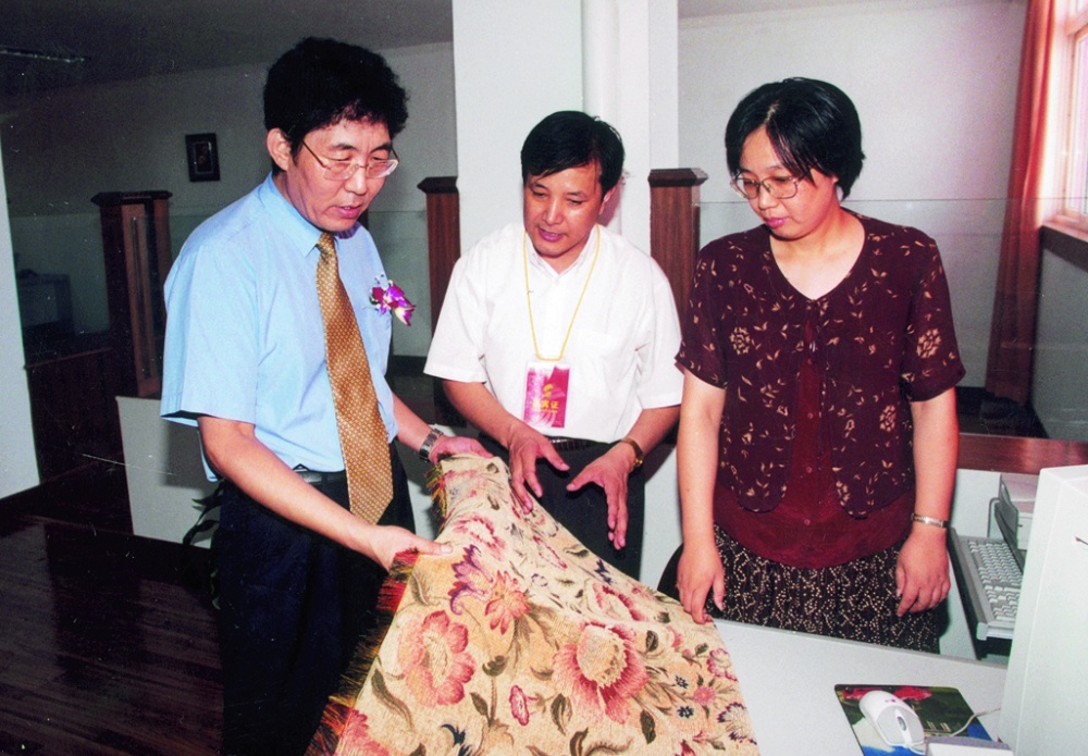 中共浙江省委書記(時任省委副書記)夏寶龍和中宣部常務副部長(時任中共浙江省委常委、宣傳部長)黃坤明在浙江宏達經編股份有限公司車間