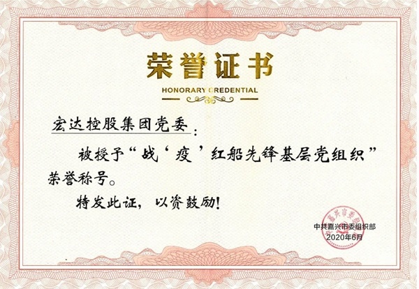 近日,中共宏達(dá)控股集團(tuán)黨委被中共嘉興市委組織部評(píng)為“戰(zhàn)‘疫’紅船先鋒基層黨組織”。