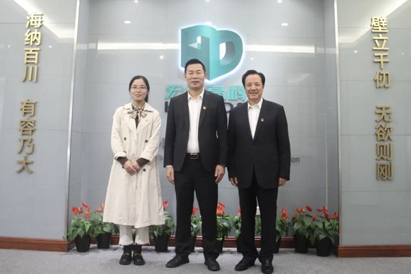 2021年10月22日下午,海寧市委常委、組織部長呂忠飛一行蒞臨宏達高科控股股份有限公司,調研“兩新”企業黨建工作,集團黨委書記、董事長沈國甫陪同調研。