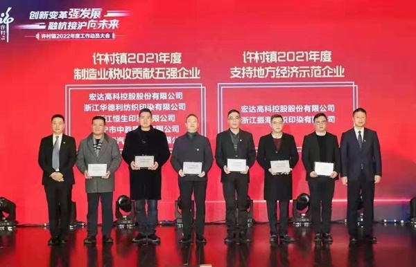 2022年2月12日下午,許村鎮(zhèn)召開“創(chuàng)新變革強發(fā)展 融杭接滬向未來”2022年度工作動員大會,“宏達高科”在會上獲評“2021年度制造業(yè)稅收貢獻五強”和“2021年度支持地方經(jīng)濟示范企業(yè)”榮譽稱號。