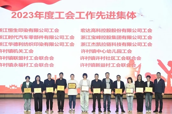 會議宣讀了關于2023年度先進集體、優秀工會工作者、2024年最美職工、工人先鋒號的公布文件。隨后,受到表彰的先進集體和個人依次上臺領獎?!昂赀_高科”工會獲評“2023年度工會先進集體”,周美玲同志獲評“2023年度優秀工會工作者”,曹燕麗同志獲評“2024年度最美職工”,公司汽車用紡織品檢測中心獲評“許村鎮工人先鋒號”。