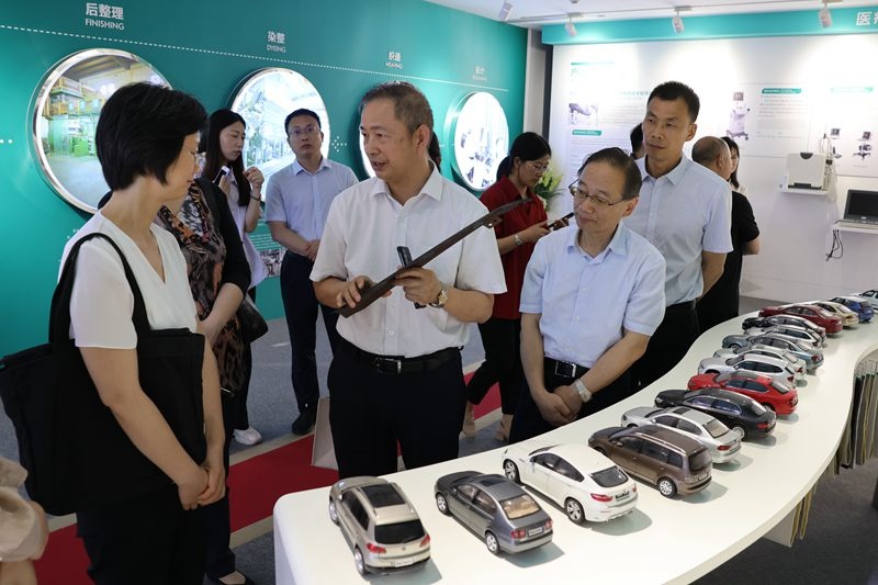 6月5日下午,國家工信部消費品工業司副司長鄭艷、消費品工業司紡織處處長楊柳等一行,在浙江省經信廳、嘉興市經信局、海寧市經信局等有關領導的陪同下,蒞臨宏達高科控股股份有限公司調研。宏達高科董事長沈國甫、總經理許建舟陪同調研。