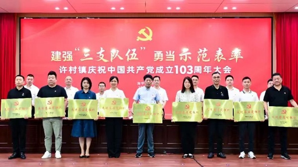 6月28日下午,“建強‘三支隊伍’ 勇當示范表率”許村鎮慶祝中國共產黨成立103周年大會在許村鎮大會議室順利召開,宏達控股集團黨委在會上獲評許村鎮“先進基層黨組織”榮譽稱號,王鳳娟同志獲評許村鎮“優秀共產黨員”。