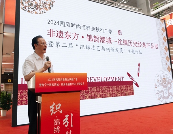 當日下午,第二屆“織錦技藝與創新發展”主題論壇在家紡城杭海面輔料中心一樓中廳舉行,沈國甫董事長在論壇上發言。他表示,織錦是中華優秀文化遺產之一,具有悠久的歷史和豐富的文化內涵。近年來,“家紡城”聯合浙江理工大學先后成立了“家紡城”時尚面料中心、“紡織非遺創意館”,將織錦元素融入現代產品設計中。作為土生土長的許村人,看到家鄉的紡織產業落實中華文明創造性轉化和創新性發展,把具有當代價值的文化精神弘揚起來,他感到無比自豪;文化遺產是不可替代的中華優秀文明資源,他激勵大家積極推進文化遺產保護與傳承,挖掘文化遺產的更多價值,讓更多文物和文化遺產“活”起來!