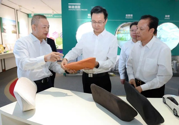 2024年10月9日下午,嘉興市委書記陳偉赴海寧市許村鎮專題調研時尚產業高質量發展工作,期間蒞臨宏達高科調研指導,宏達高科董事長沈國甫、副董事長沈珺、總經理許建舟等公司領導陪同調研。