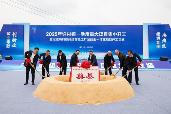 3月30日上午,2025年許村鎮(zhèn)一季度重大項(xiàng)目集中開工暨宏達(dá)高科高端功能性面料和碳纖維復(fù)合材料智能工廠及商業(yè)一體化項(xiàng)目開工儀式舉行,充分貫徹落實(shí)“投資拉升、產(chǎn)業(yè)躍升、城鄉(xiāng)融合提升”這一工作主線,為“海寧西站板塊的蝶變躍升、許村時(shí)尚產(chǎn)業(yè)的轉(zhuǎn)型升級(jí)”注入強(qiáng)勁動(dòng)能。