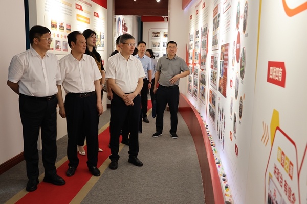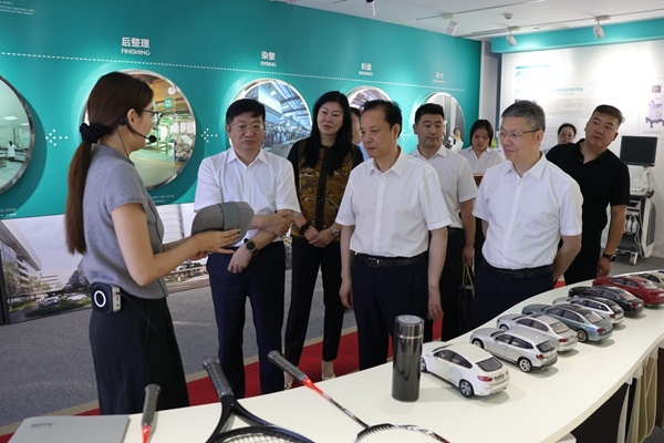在沈董事長的陪同下,程志強書記一行參觀了公司展廳,深入了解了宏達地理位置、企業文化、發展歷程、產業布局、產品等情況。