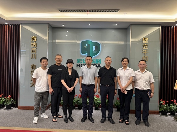 8 月 22 日下午,浙江理工大學服裝學院黨委書記吳躍峰、副院長須秋潔、教授岑科軍一行來到宏達高科參觀交流。公司總經理許建舟、黨委副書記胡朗秋、企管人資部經理汪嬋、技術部副經理肖維等公司領導熱情接待。