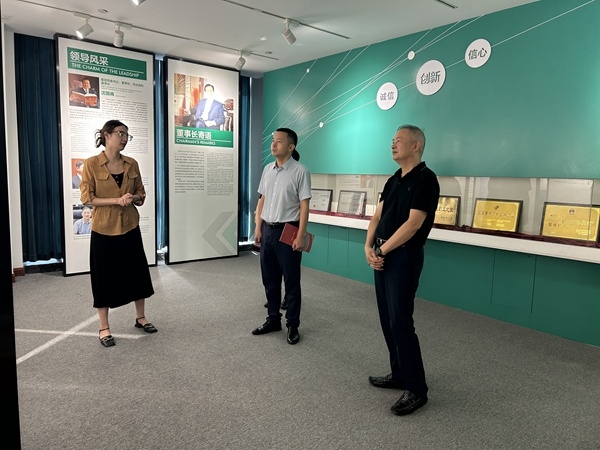 在許建舟總經理的陪同下,吳躍峰書記一行參觀了宏達高科展廳,了解了公司的發(fā)展歷程、企業(yè)文化、產品等。