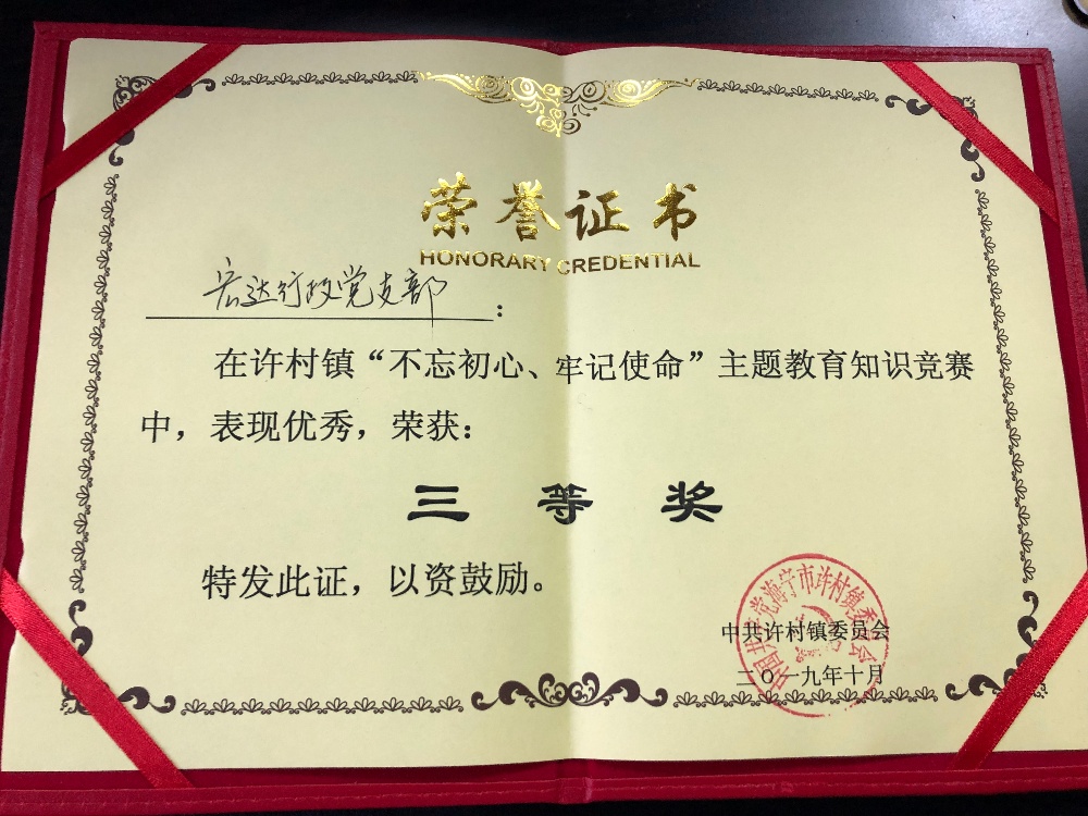 宏達行政黨支部參加鎮黨建知識競賽獲獎