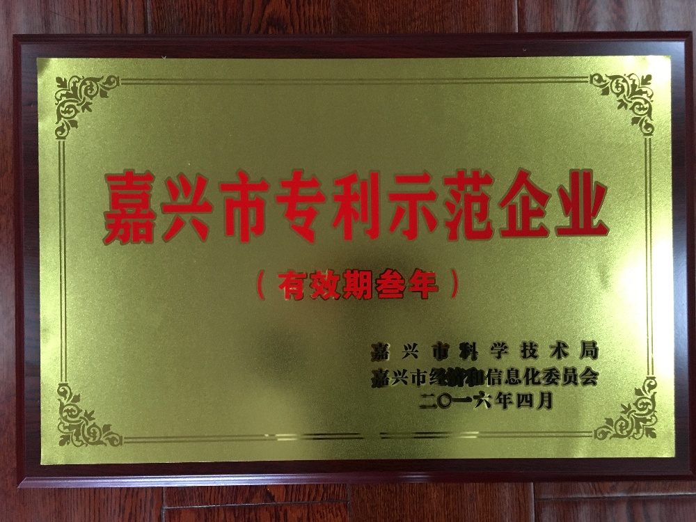 近日,公司收到了嘉興市科技局、嘉興市經信局聯合頒發的《嘉興市專利示范企業復審證書》,有效期為三年。