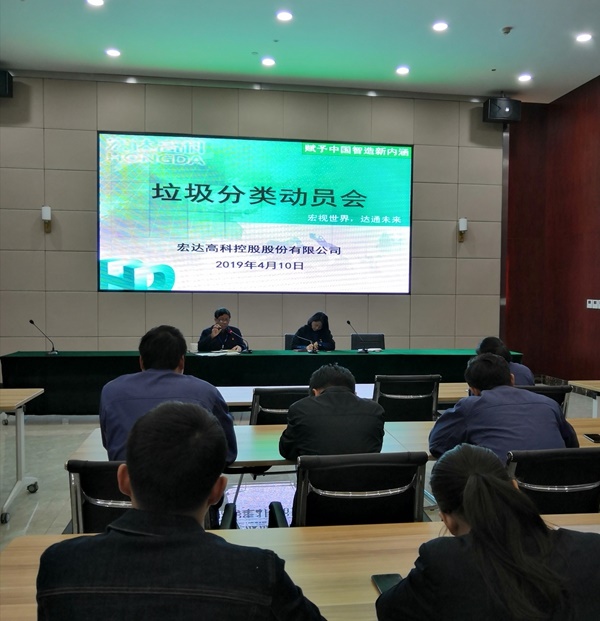 根據市創建文明城市和許村鎮環境全域提升工作部署,在多次參加鎮里組織的相關工作培訓會后,為深入推進公司垃圾分類工作,激發公司各部門活力,充分發揮各部門在深入實施垃圾分類工作中的創新、務實作用,2019年4月10日,宏達高科召開垃圾分類動員會。公司管委會馬月娟副主任、孫云浩副總經理和各部門負責人參加會議,會議由潘建華副總經理主持。