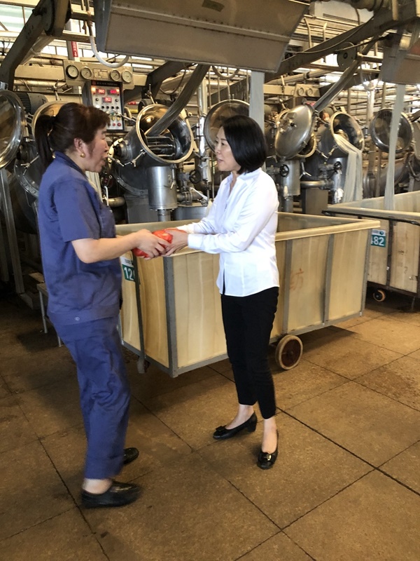 在“宏達高科”染色、定型等高溫車間,公司領導馬月娟等管理人員深入工人工作崗位,了解了車間防暑降溫工作,察看了員工的工作環境,慰問了正在辛勤工作的員工,并為他們送上毛巾、沐浴露等清涼用品,叮囑大家注意防暑降溫及自身安全;要求車間負責人繼續認真落實公司高溫期間職工勞動保護、完善防暑降溫各項措施,科學安排作業時間及內容,切實保障員工的各項權益。