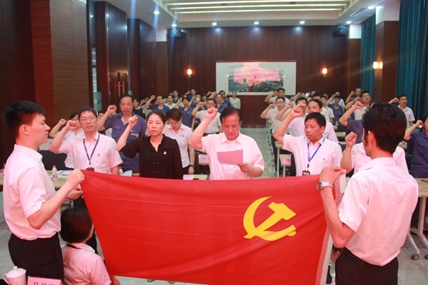 6月29日下午,中共宏達控股集團黨委在宏達高科控股股份有限公司會議室召開慶祝中國共產黨成立97周年黨員干部大會。大會由黨委委員潘建華同志主持,集團黨委書記、董事長沈國甫以及黨委全體成員、集團所屬支部全體黨員、入黨積極分子、部門助理以上干部共65人參加。
